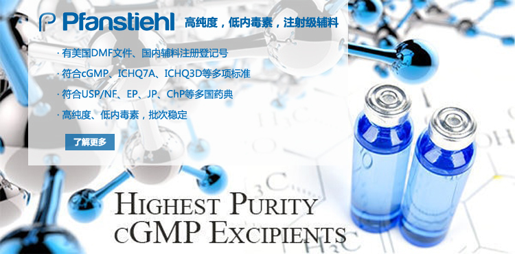 “熱烈祝賀Pfanstiehl的注射級甘氨酸Glycine(G-140)喜獲CDE登記號F20250000403, 這是Pfanstiehl產品獲得的第18個CDE登記號!”甘氨酸在醫藥輔料制劑中應用廣泛,, 可作為緩沖劑,增溶劑,穩定劑等,具有諸多優勢。Pfanstiehl秉承一貫高品質理念,為滿足全球生物制藥行業對于高品質甘氨酸的需求,隆重推出的注射級甘氨酸Glycine (G-140), 具有超高純度,超低內毒素,超低金屬殘留的特點,單獨檢測29種金屬離子,并且新增DNA,RNA,DNA酶,RNA酶和脂肪酶,亞硝酸鹽等多項質量指標的檢測,符合多國藥典規定(USP, EP, BP, JPE, ChP),可用于生物治療性藥物和疫苗的生產。產品信息:· 產品名稱:Glycine, High Purity, Low Endotoxin, Low Metals, USP, EP, BP, JPE, ChP (G-140)· 中文名稱:甘氨酸· 分子式:C2H5NO2· 分子量:75.07 g / mol· CAS號:56-40-6· 產品貨號:G-140產品特點: · 超高純度,超低內毒素,超低微生物含量,超低金屬雜質殘留· 質量指標新增DNA,RNA,DNA酶,RNA酶,脂肪酶和亞硝酸鹽檢測· 符合多國藥典:USP, EP, BP, JPE, ChP· 符合ICH Q3D標準· 符合GMP標準· 已獲DMF和CDE登記號 產品應用:· 緩沖劑· 穩定劑· 增溶劑如果您對Pfanstiehl注射級別Glycine G-140感興趣,歡迎聯系Pfanstiehl 中國區代理商北京西美杰科技有限公司獲得如下詳細的產品概況說明文件和測試樣品。Pfanstiehl Inc.最新產品系列如下,歡迎聯系北京西美杰科技有限公司獲取100g裝免費樣品。北京西美杰科技有限公司為Pfanstiehl中國代理,為客戶提供完善的技術支持與售后服務。歡迎撥打西美杰客服電話400-050-4006或者登陸網站www_xmjsci_com.hyjszpc.com.cn了解更多信息。 更多>